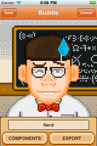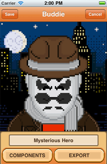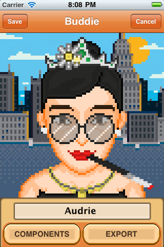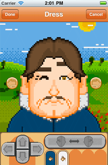 Pixel art portrait creator for iOS that features more than 300 facial features to choose from. Won BeMyApp 2011 competition.