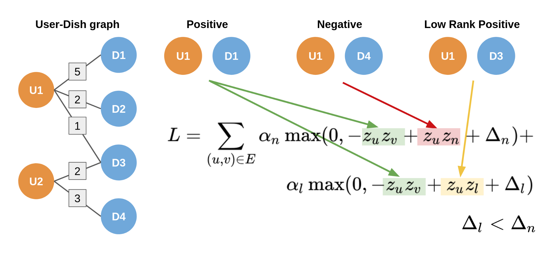 We applied graph learning to dishes and restaurants recommendation in Uber Eats. In order to do so we had to modify some existing algorithms (in particular GraphSage) to work with heterogeus weighted graphs, by introducing a new loss and weighting scheme. The adoption of this new technique yielded substantial improvements in both offline and online metrics like AUC, MRR and Click-Through Rate and Conversion Rate and it's now deployed in a growing number of cities. We wrote a blogpost about it and presented it at O'Reilly TensorFlow World 2019 and at RE•WORK Applied AI Summit San Francisco. the presentation was featured as one of the top 5 technical AI presentations from January 2019.